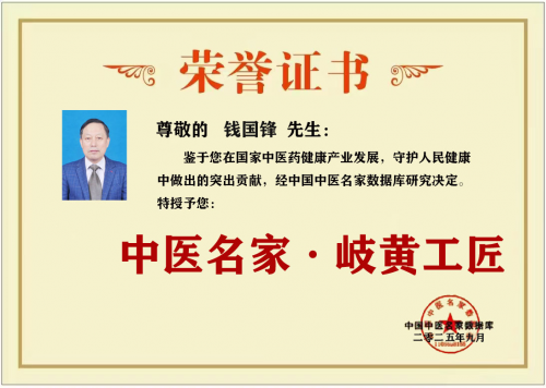 《新时代基层名中医优秀文集》编委,入选2023中国优秀中医人才榜;其论著的《中医治疗脚气症经验》入选《中华中医药特色医疗优秀文集》,其独创的“钱氏秘传独特疗法治疗十二类腰痛症”项目被列为非物质文化遗产项目。